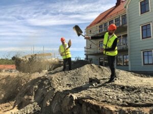Henrik Persson Hvarfner (Axeby Bostad) och Carl-Johan Augustsson (Rydlers Bygg) startar bygget för Stora Parkvillan …